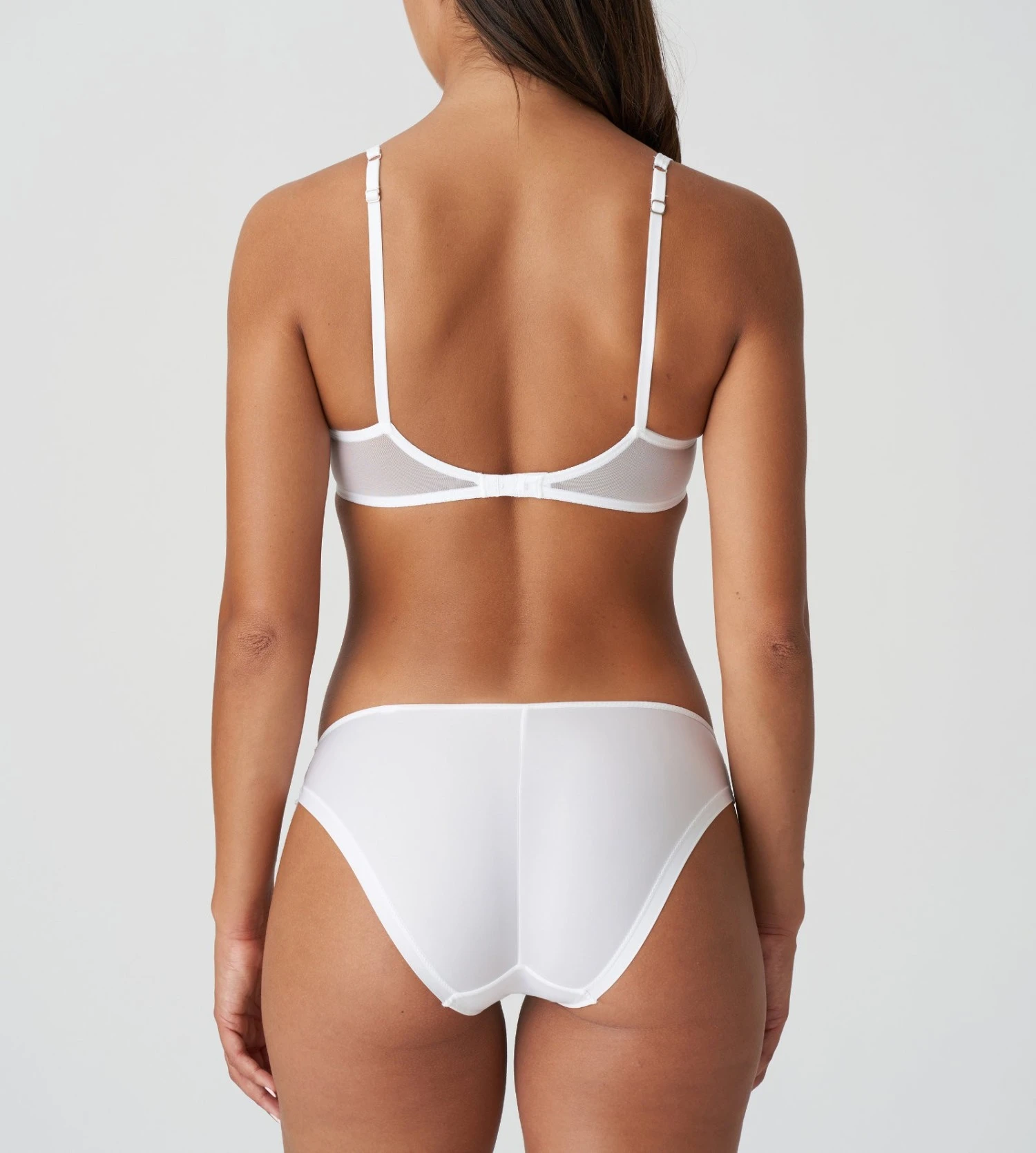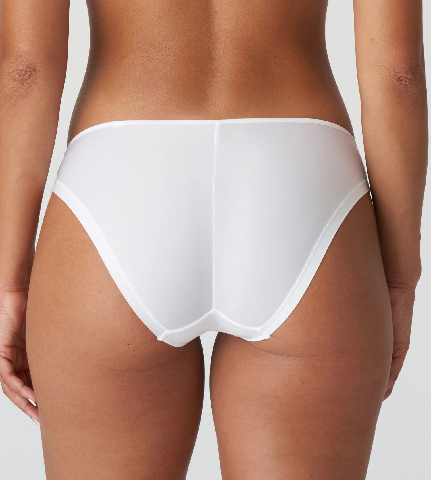 Ce slip Marie Jo couvre joliment les fesses et ne laisse aucune démarcation grâce à ses coutures extrêmement plates. Invisible sous toutes vos tenues estivales. Un élégant slip brésilien avec broderie florale raffinée et dentelle luxueuse.