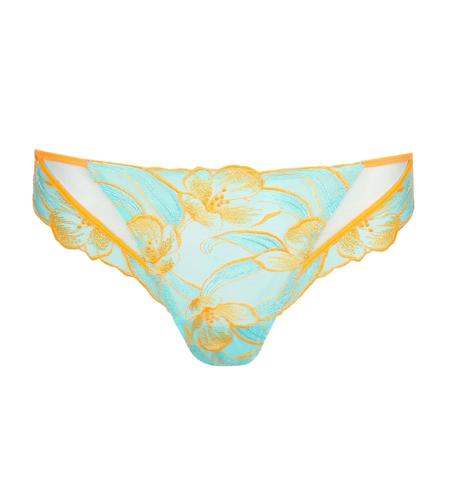 Une culotte estivale et frivole avec des broderies flashy et une coupe élégante. Ce modèle recouvre joliment les fesses et affiche des finitions très délicates.