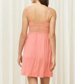 - Dentelle jacquard sur le décolleté et l’ourlet bas.