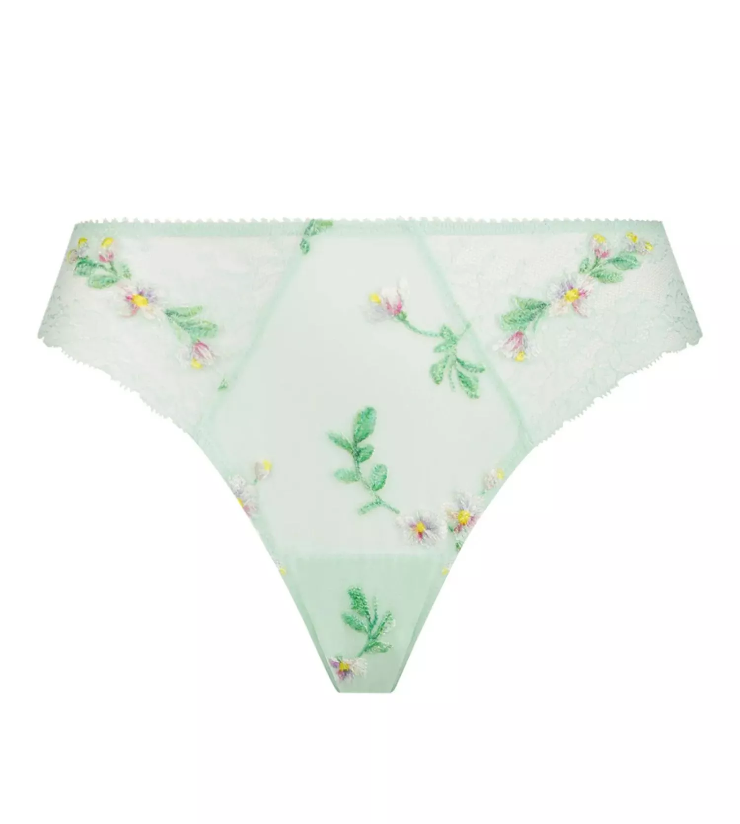 - Slip échancré en tulle, broderie florale exclusive et dentelle Leavers.
