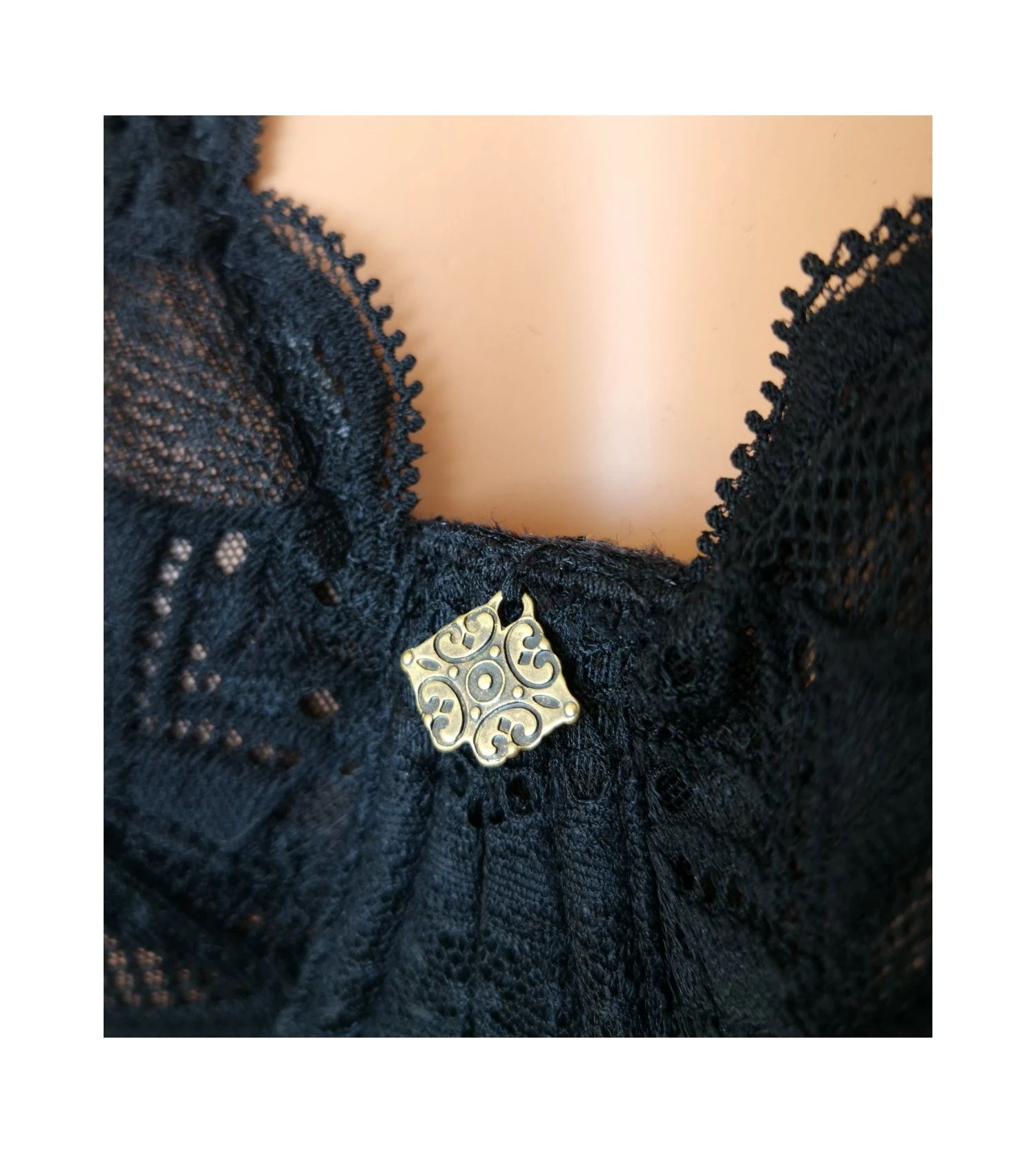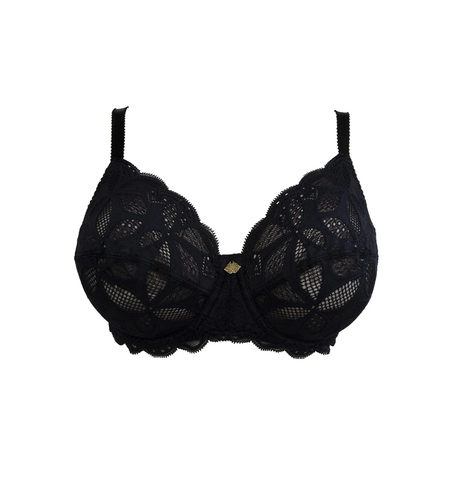 - Soutien-gorge grand bonnet en microfibre douce, résille et dentelle florale plumetis.