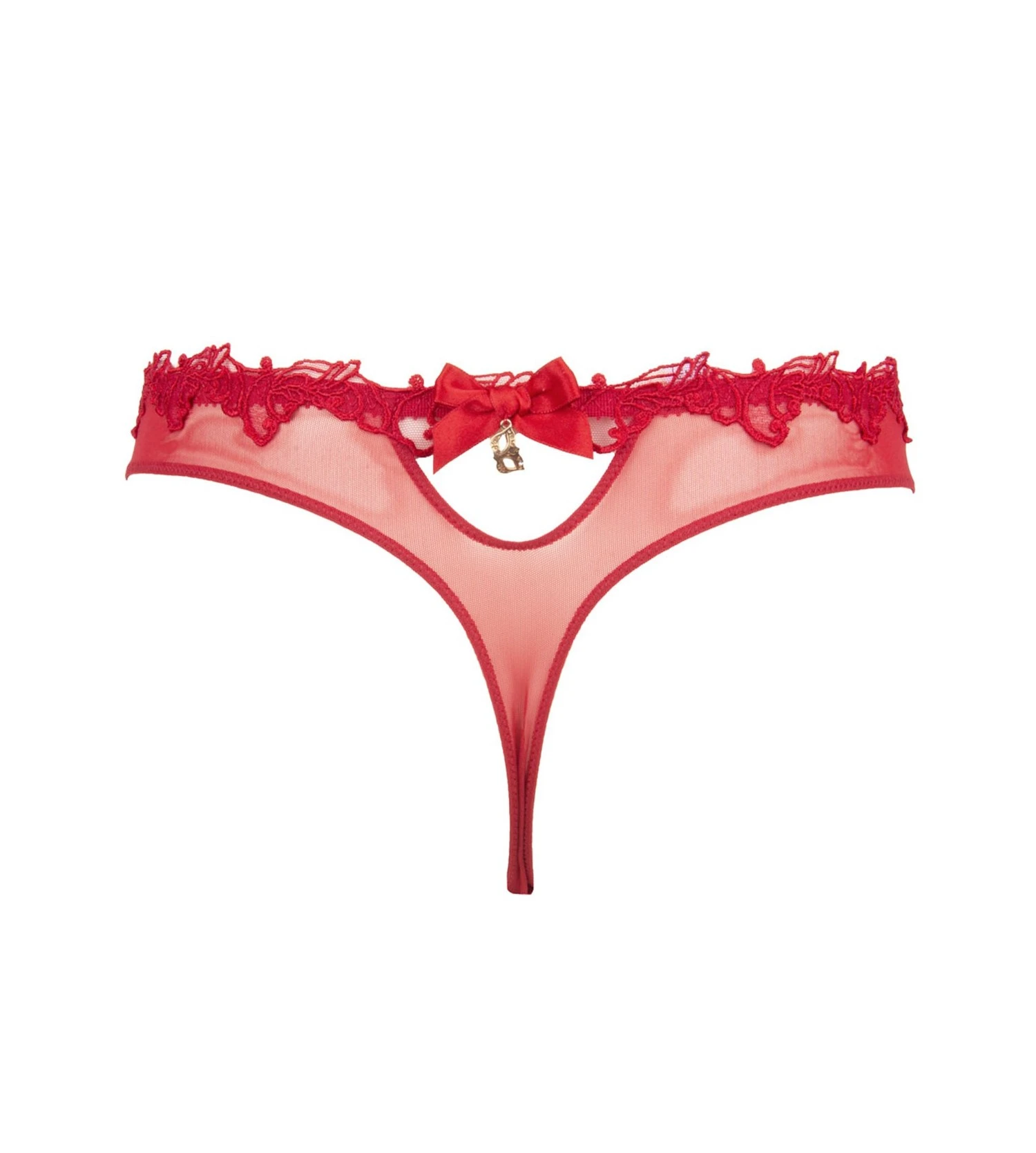 Avec sa broderie et sa découpe sexy, ce string respire le romantisme et la séduction. Vous aimerez le jeu de transparence que propose la découpe du string sur les reins. L’arrière du sous-vêtement est agrémenté d’un petit nœud en satin et d’un masque vénitien avec à nouveau une découpe très sexy. Chic et élégant, ce string Lise Charmel tout en transparence grâce à son tulle multibrin ne laissera personne indifférent.