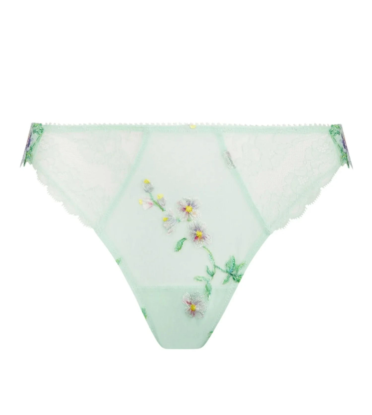 - String / tanga en tulle, broderie florale exclusive et dentelle Leavers.